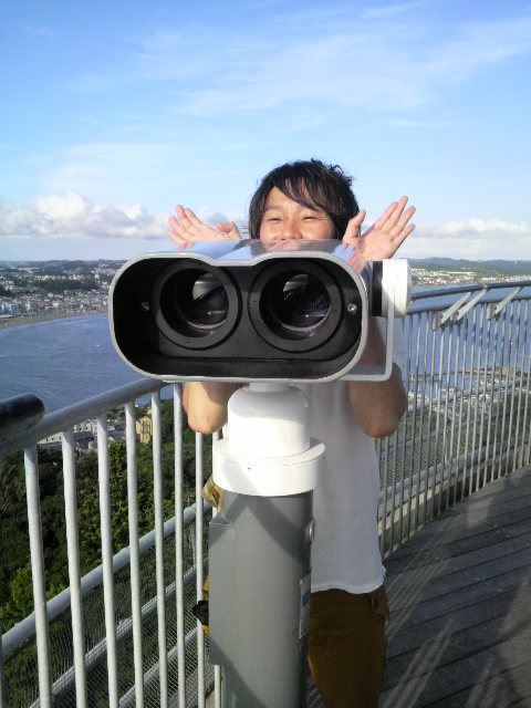写真は江の島の展望台に行ってあまりの景色のよさに興奮してしまいしてしまっ た時のポーズでした(^^)